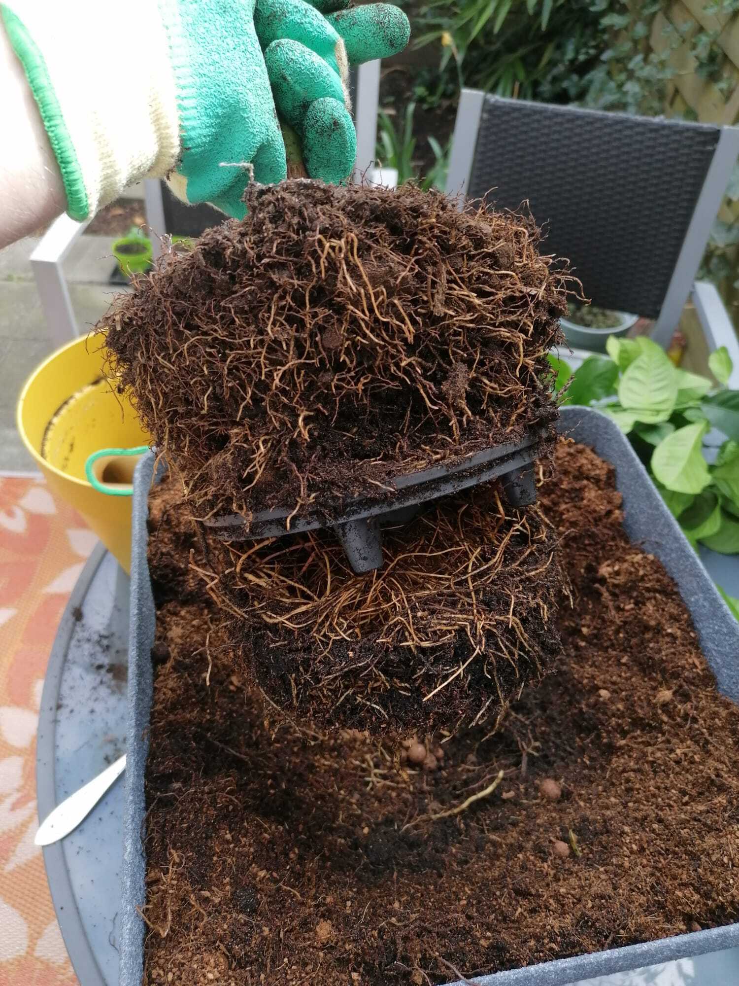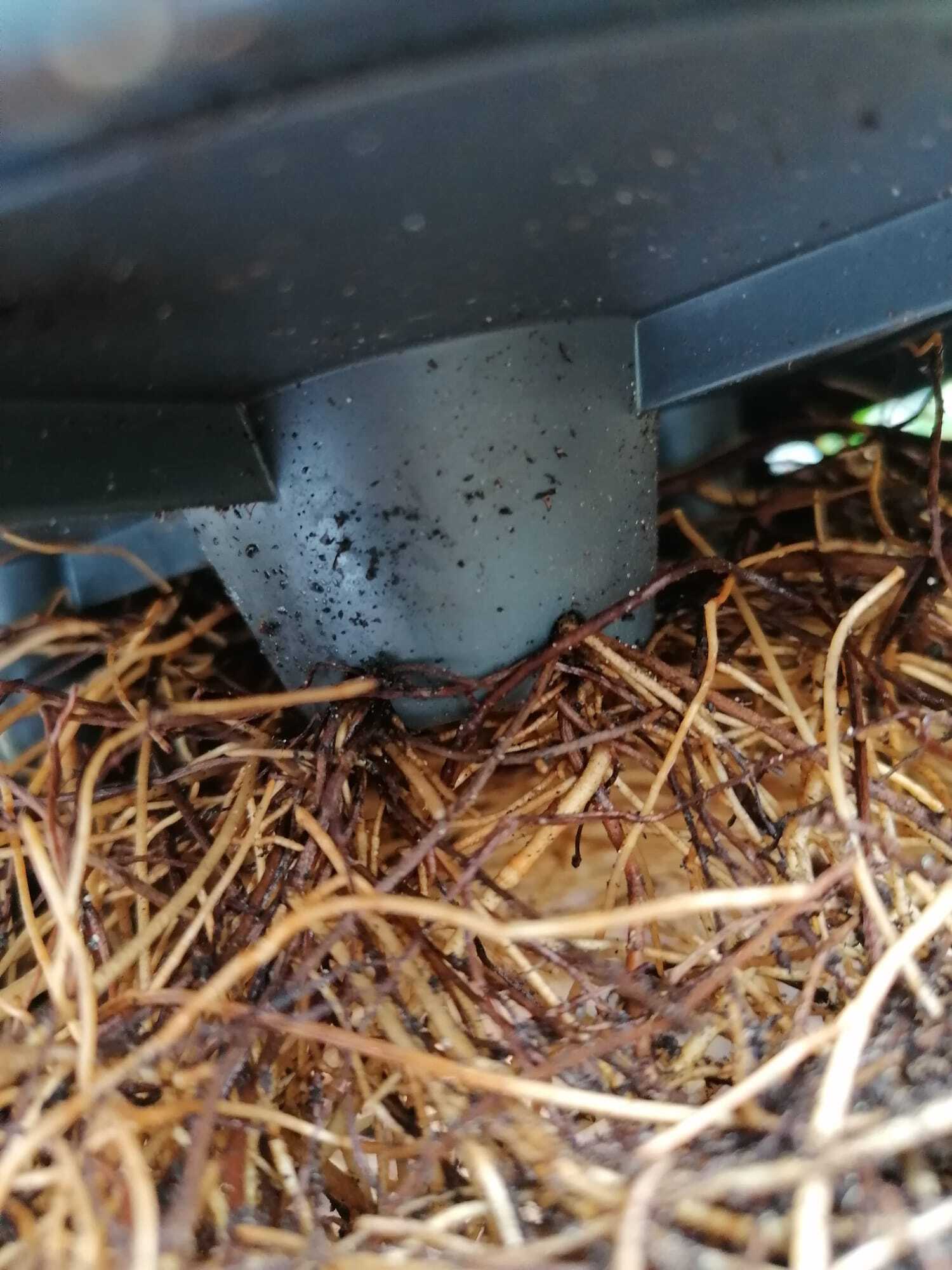 Ik was van plan mijn avo-boompje naar een grotere pot te verplaatsen (broodnodig zoals jullie kunnen zien). Nou zat er onderin die pot een afwaterdekseltje waar de wortel doorheen is gegroeid. En nu weet ik niet zo goed of ik dit moet proberen los te knippen ivm beschadigingen, of dat ik hem lekker moet laten zitten en de avo succes wensen met eromheen groeien. Ongeveer de helft van de wortels bevindt zich onder het schoteltje.