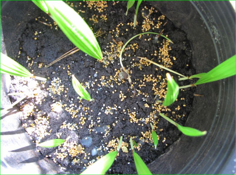 En die korrels die er bij liggen zijn Osmocote-korrels maar dan speciaal voor palmen. Dit via een palmen kweker gekocht. Normaal is het voordeel dat je maar een keer per jaar je palmen hoeft de bemesten en ze hebben dan genoeg voor het hele seizoen.