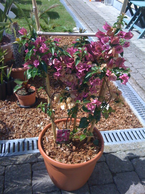 Hij komt van de markt en bij thuiskomst heb ik hem meteen wat groter gezet en op het terras gezet.