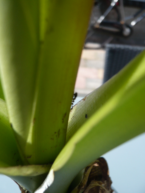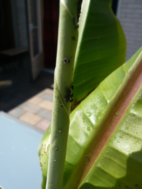 Ik heb ze in de voor- en achtertuin, voornamelijk op de banaanachtige.