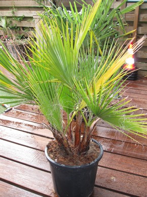 Dit is geen meerstammige Chamaerops humilis, maar meerdere Washingtonia filifera (of robusta) in één pot ;)