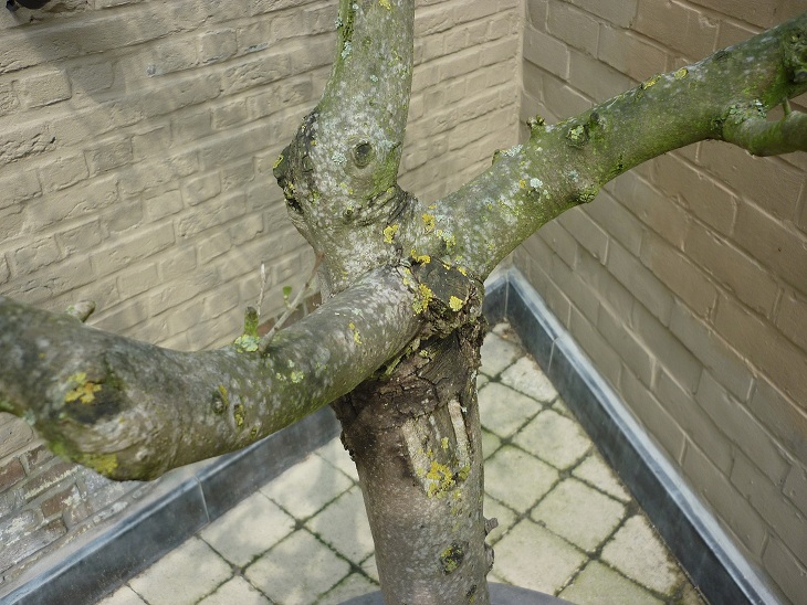 Nieuwe uitlopers onderaan de boom meteen wegnemen zo zal ie meer energie overhouden voor groei in de bestaande takken en verticaal groeien.