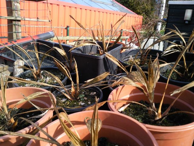 Na zo'n winter als deze bezwijken ook grote palmen die niet sterk genoeg ijn en dan is het zonde van het geld.
