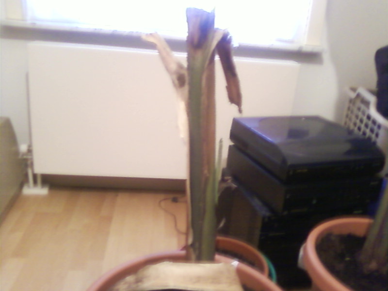 Heb je een fotootje van je plant? Soms wordt dit bij palmen ook gedaan dus ik denk dat het wel ok is ... Vanwaar komt dit zwart eigenlijk op bananen. Mijn Musa daijao heeft plots een zwarte stam. De nieuwe bladeren zijn wel ok, alsook de E.ventricosum. Ik denk dat dit komt omdat ze te koud hebben gestaan, maar ben niet zeker ... :?