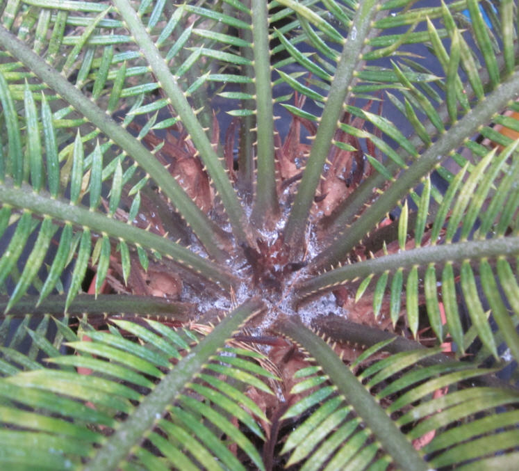 Een paar dagen terug heb ik via een kennis een grote Cycas Revoluta gekregen. Heb die meegenomen maar heb die toch buiten het huis en niet in de buurt van mijn andere planten gezet. Dit omdat er aparte dingen op die plant zaten. Een andere kennis zei dat de plant vol met wolluis zat en dat ik er heel voorzichtig mee moest zijn ivm met mijn andere planten.