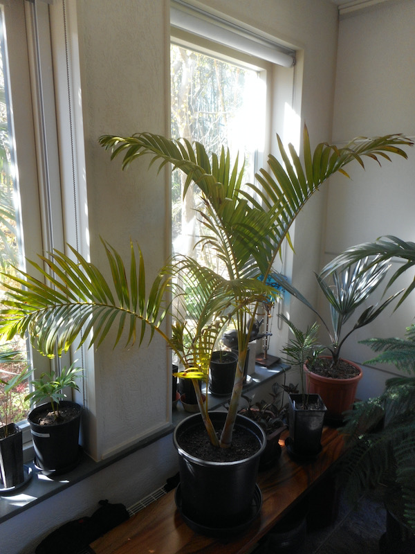 Hier ook twee Dypsis lutescens, eentje gekregen van iemand die er geen plek meer voor had en eentje al als zaailing hier in huis en begint nu mooi te clusteren. De eerste blijft het jaarrond binnen en die wordt hopelijk ooit net zo mooi is die van jou. :)