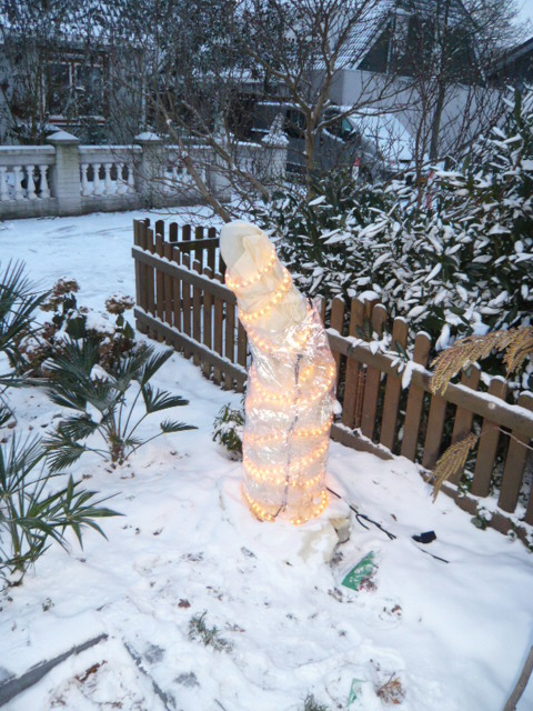 door het gewicht van de sneeuw ... salut met de veren, alles weg maar gelukkig is de kop