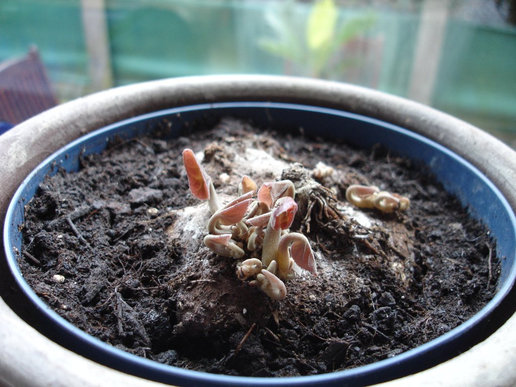 mijn Rhapis zal binnenkort eens overgepot moeten worden, echter ik weet niet wat dat ding mankeert. Wellicht te koud en te droog overwinterd i.c.m. het in bloei staan nu, dat hij z'n krachten een beetje heeft verspeeld of zoiets. Wat mij betreft kun je er wel een stek van krijgen, er zal vast wel iets af te halen zijn als het wordt overgepot. Maar moeders mooiste zal het vrees ik niet zijn.