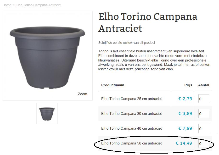 Nu was ik daarna bij het tuincentrum en even gecheckt, enige verschil dat me opviel is dat de rand van die dure wat dikker lijkt, minder meebuigt etc. Zelfde merk, zelfde formaat etc dus wie weet kan iemand er zijn of haar voordeel mee doen. Daarnaast nog meerdere maten en modellen uiteraard maar daar zelf geen interesse in.