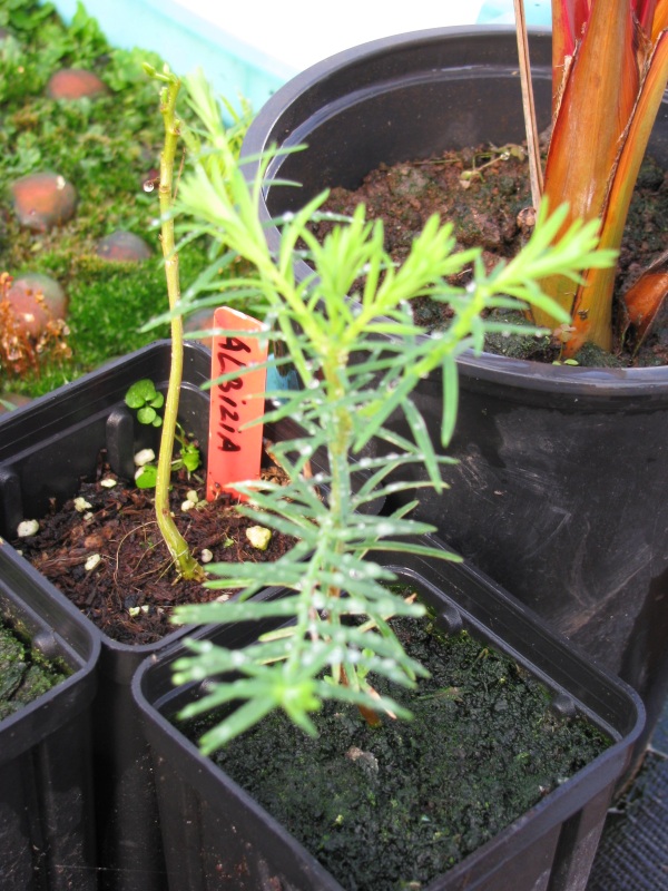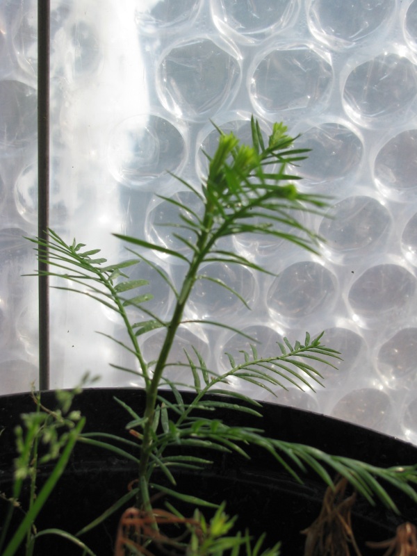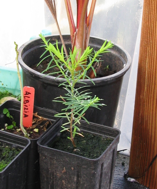 Ik kwam net in de serre en het was er stikkeheet. Tot mijn verbazing zag ik dat de Sequoia sempervirens, de Albizzia, de Gunnera manicata en sommige banaantjes al begonnen met nieuwe blaadjes aan te maken!