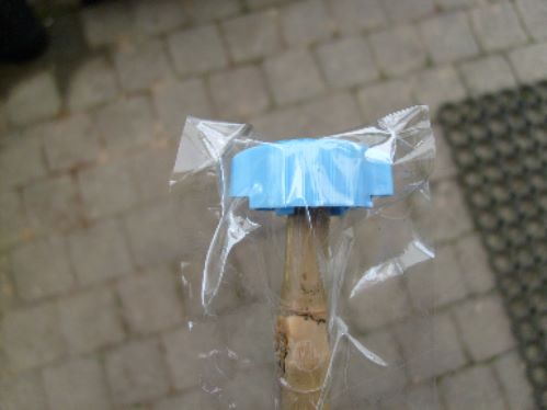 Als je een plant in een pot verstuurd en je doet er zoals bij jouw een stokje naast zodat hij vastzit kan je het beste aan de bovenkant een plastic dop van een fles plakken.