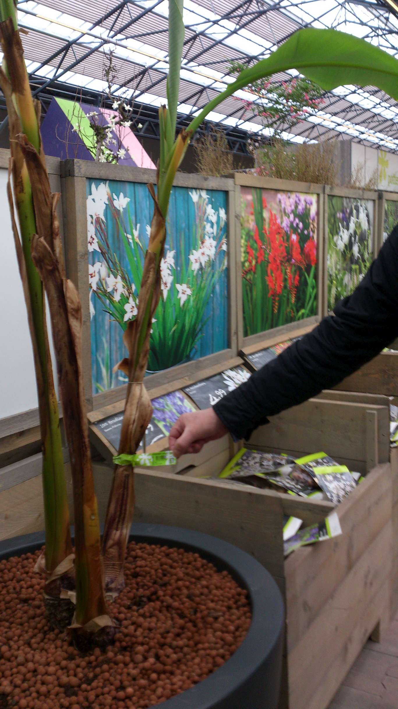 Kosten voor deze grote pot met 3 stammetjes van de musa Basjoo €179,-