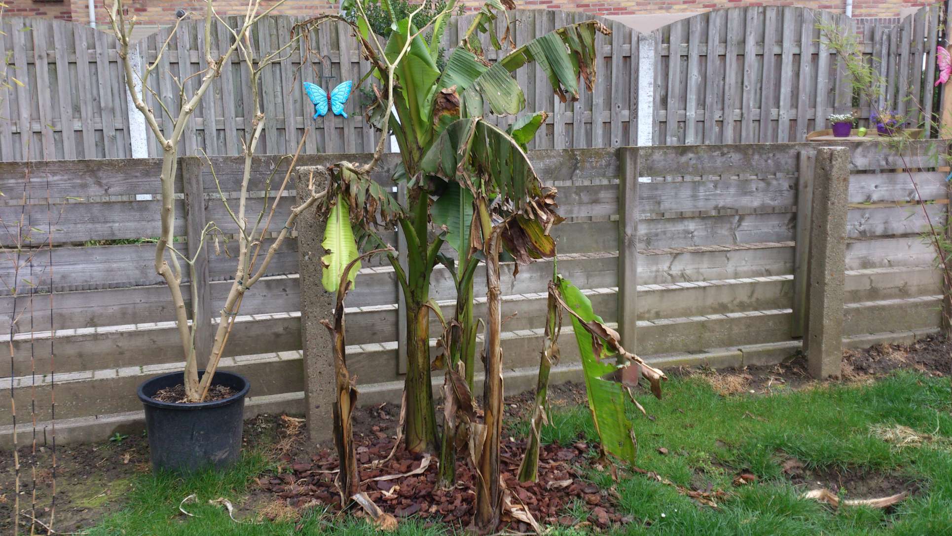 Kosten voor deze grote pot met 3 stammetjes van de musa Basjoo €179,-