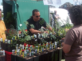 Terug thuis van een uitstapje naar Haps. Weeral een geslaagde editie als je het mij mag vragen, tropisch weer, heel wat gekende gezichten gezien en ook ongekende waar we een naam op hebben geplakt en wederom een aantal planten in de koffer kunnen steken en terug de grens over geraakt :lol: . De heen reis was niet alles wat het moest zijn want in Eindhoven was de autoweg volledig heraangelegd en was rijden met GPS niet evident, er werd zelf op een gegeven moment er op aangeduid om er niet op te navigeren, dus op de ouderwetse manier de copiloot met de kaart (a) eenmaal terug op het goede "pad" begon mijn GPS kuren te krijgen en stuurde mij naar Haps via een kleine omweg naar Nijmegen, wederom hebben we dit kunnen oplossen met de copiloot en de kaart. Om iets na 11u, 11u03 om precies te zijn stonden we aan de ingang van de beurs. Met als gevolg een aantal planten rijker waaronder een Cyathea Brownii van bij Ro, na het bezoek bij Ponga was het beginnen kriebelen en onze vriend Ro heeft de laatste zet gegeven om er dan één aan te kopen (a), ook nog 2 cycas en voor de copiloot nog een mooi en winterhard bloemplantje nl. een Bougainvillea ‘Dania’. Maar genoeg geleuterd hier zijn enkele sfeerbeelden