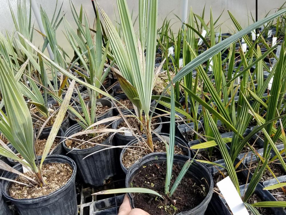 Same uresana seedling with brahea armata. To the right are baby phoenix dactylifera.