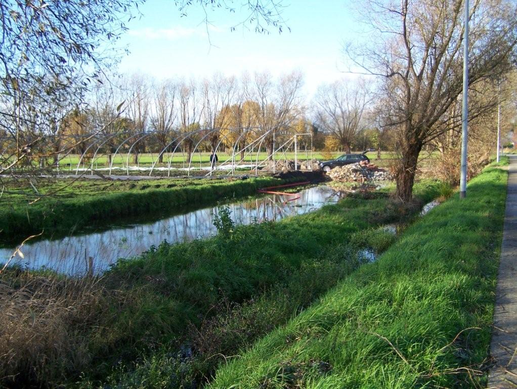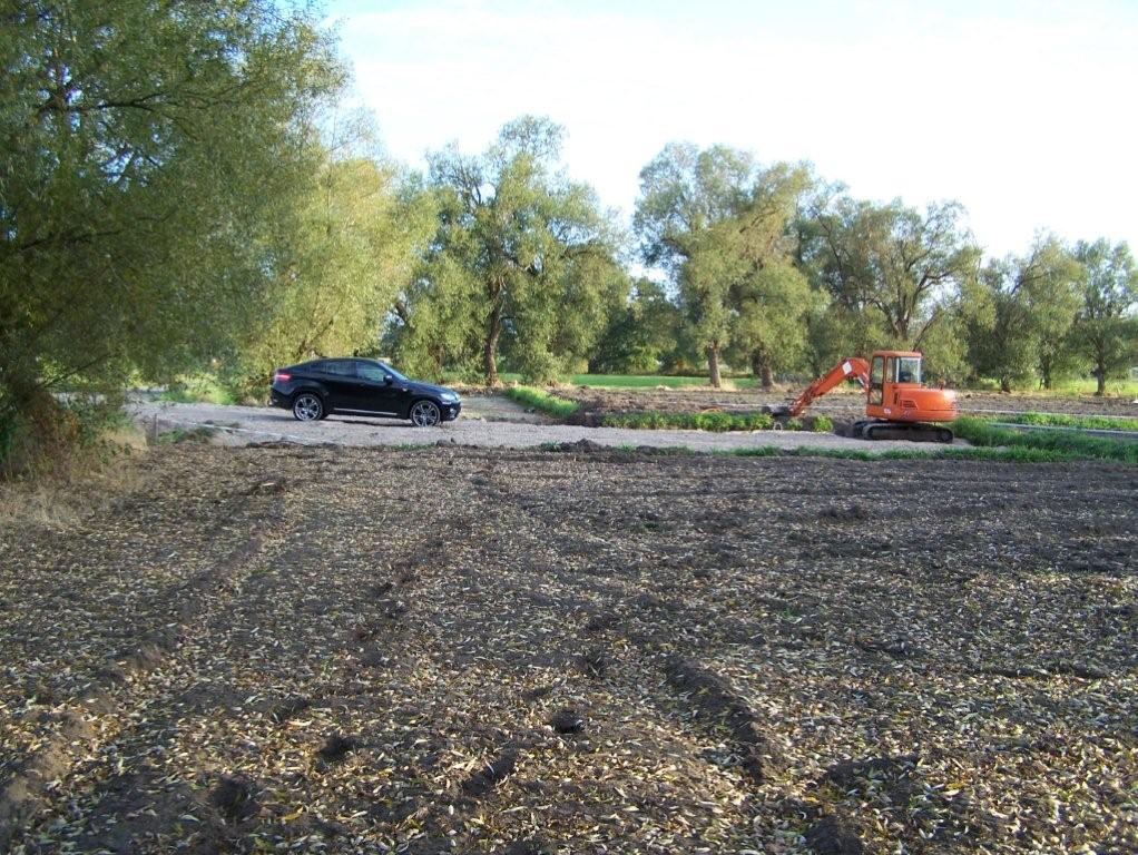 Daar waar het water staat aan de voorkant is uitgegraven en daar komt puin in als parking voor de vrachtwagens.