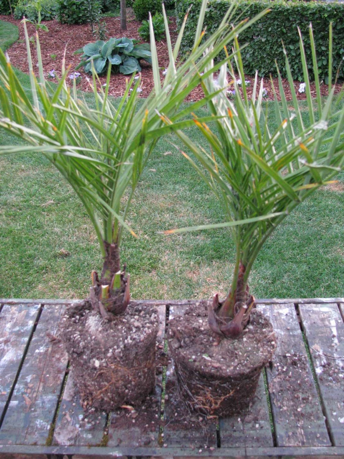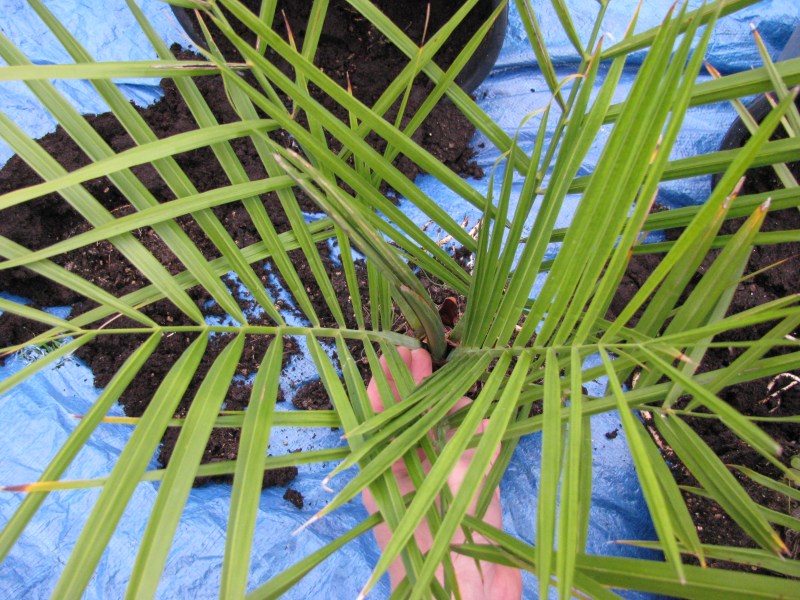 Eind vorig jaar kreeg ik een flesje Palmcare toegestuurd van John (TenJ palms and yuccas). Natuurlijk wou ik dit nieuwe product eerst even testen. Ik had nog twee Jubaea chilensis van ongeveer dezelfde grootte, dus ben ik daarmee in de lente van dit jaar aan de slag gegaan. De bevindingen zijn best positief! :thumb_up: