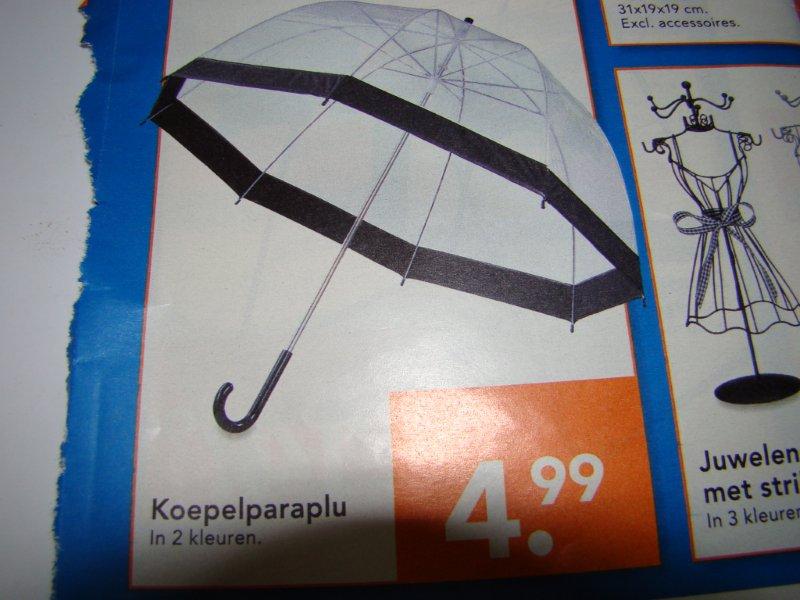 Ter informatie : deze week staan de koepel regenschermen( doorzichtig ) te koop bij Blokker aan 4,99 .euro. Heb er ondertussen al enkele gaan halen, dus in Diksmuide zijn ze uitverkocht :lol: