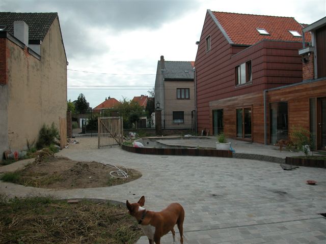 een vriendin van mij is tuinarchitecte en zij heeft het bestratingsplan getekend, ze heeft dat idd heel goed gedaan vinden we.. waar er platinnes liggen achteraan had zij liever gras gezien, maar dat vond ik nt practisch.. 3 honden plus dagelijks oversteken nr de composthoop en mijn camionette laden enzo.. haar beplantingsplan trok me evenwel helemaal nt aan, dat ben ik nu volledig zelf aan het uitpluizen