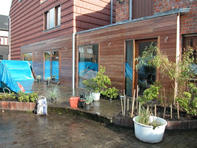 Mag je niets tegen die gevel van de buurman aanzetten? om die saaie gevel te onderbreken!