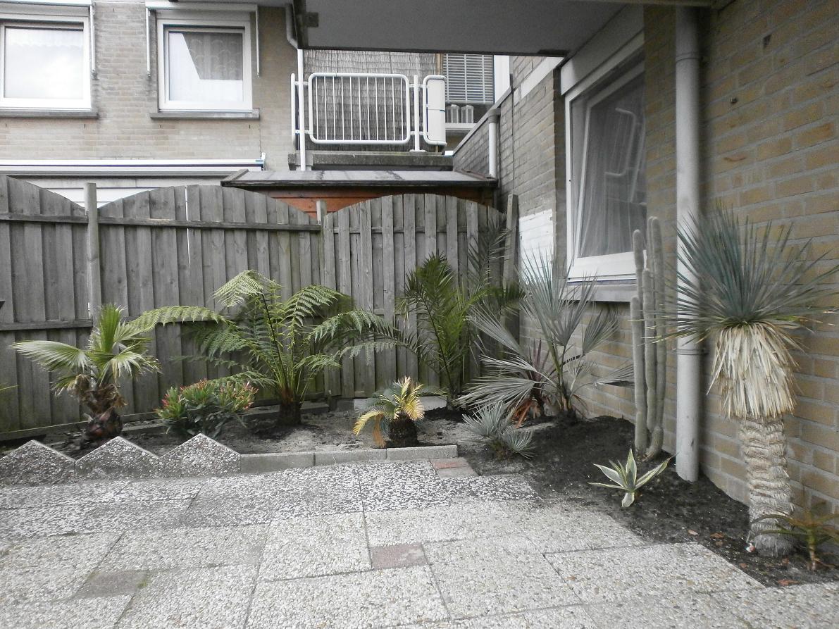 De P.Canariensis staat er sinds zomer 2013 en de Yucca Rostrata heeft er 2 winters opzitten,