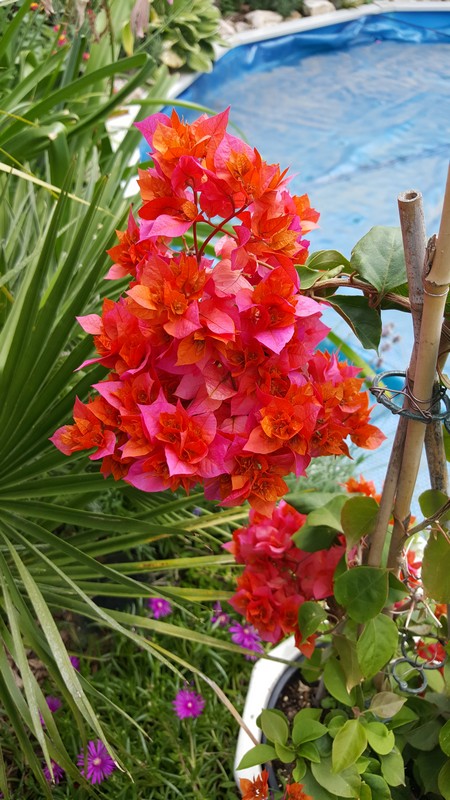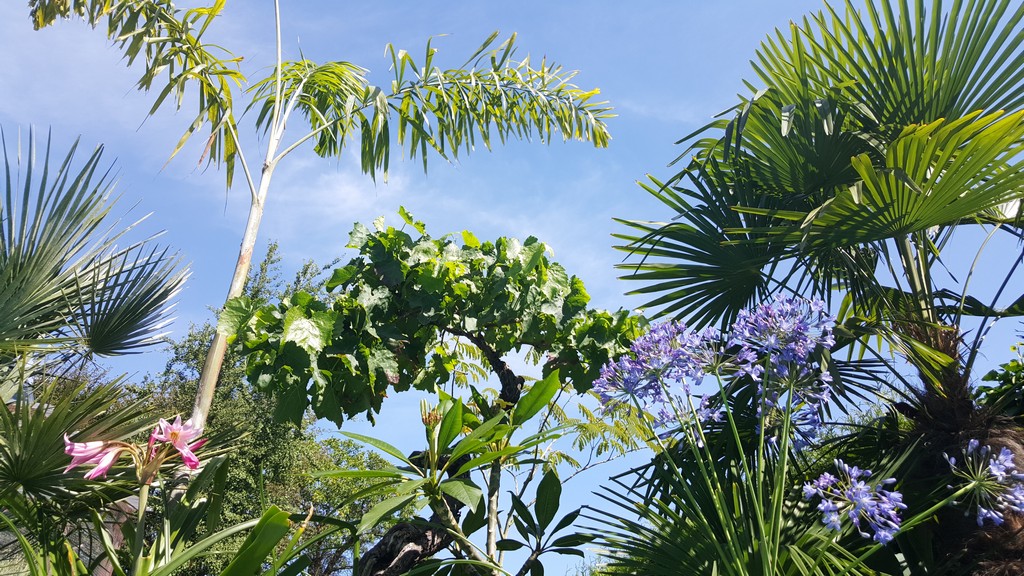 Verder nog een +150jarige olijf, Heliconia olympic flame, Heliconia rostrata, verschillende plumeriasoorten, Bougainvilleas, citrusboompje, Strelitzia reginae, Strelitzia reginae ‘Mandela’s Gold’, Strelitzia nicolai, Musa basjo, Musa 'Dwarf Cavendish', Musella lasiocarpa, Hymenocallis littoralis, Albizia julibrissin Summer Chocolate.