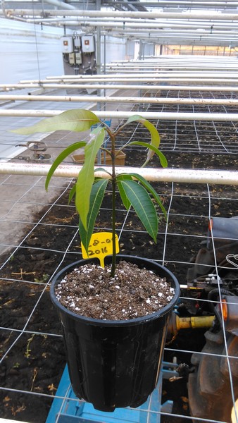 Dit is de mango die ik eigenlijk een beetje impulsief heb laten ontkiemen, dit was meteen de eerste keer raak. Hij heeft sinds kort wel een beetje last van een schimmel op 2 blaadjes (meeldauw?) maar deze blaadjes heb ik er maar afgeplukt, hopen dat het wegblijft: