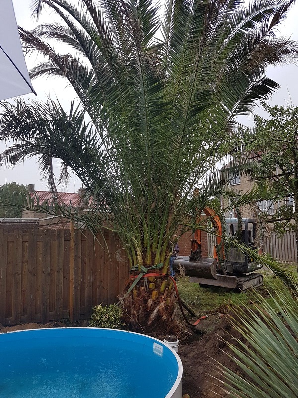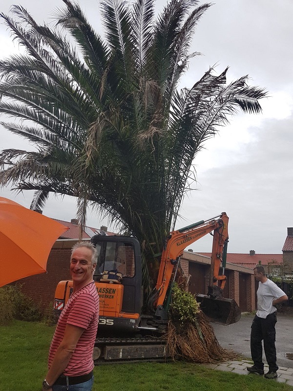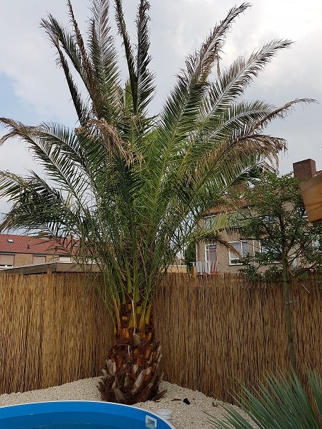 Op een gegeven moment kwam er een schitterende Phoenix Canariensis voorbij op Facebook die te koop stond.. deze had 20 jaar in de vaste grond gestaan en is door het glazen dak naar buiten gegroeit..