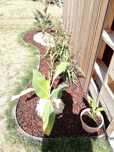 We hebben ons ook eens gewaagt aan het zaaien; enkele mussa varianten en canna's. Er steken er momenteel al een paar hun kopje boven de aarde