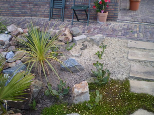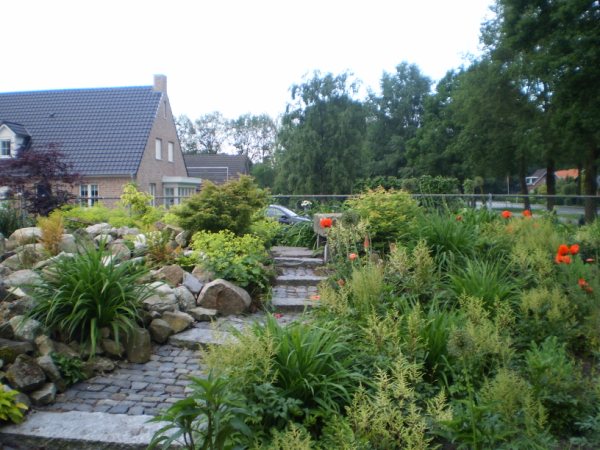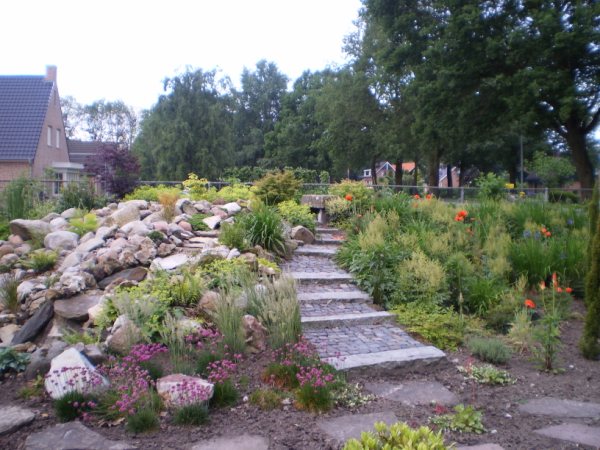 Die heuvel met wandelpaadje erover is leuk gevonden. Ik vind het rotstuin-idee ook wel heel tof, mooi uitgevoerd! Als de planten wat groter en voller zijn gaat het super worden!