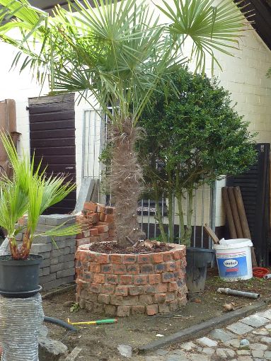 Voor mne grote fortunei heb ik wel al een ronde bak gemetselt met daarin noppenfolie laagje en dan noges en rizomenband(50cmhoog,enkel voor geen verbrande wortels te krijgen van de cement die gebruikt is voor m'ne pot)