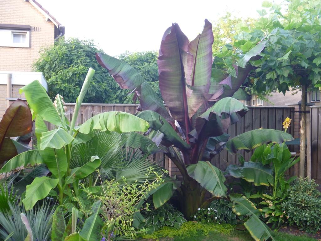 Musa basjoo, Musa dwarf cavendish, Ensete ventricosum, Ensete ventricosum Maurelli, Musella lasiocarpa, Strelitzia reginea en nog wat canna's