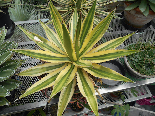 Andere soorten: A. macroacantha, A. havardiana, A. montana e.a. Te vermijden de Agave americana met uitzondering van de variant 'Mediopicta Alba' die kleiner blijft.