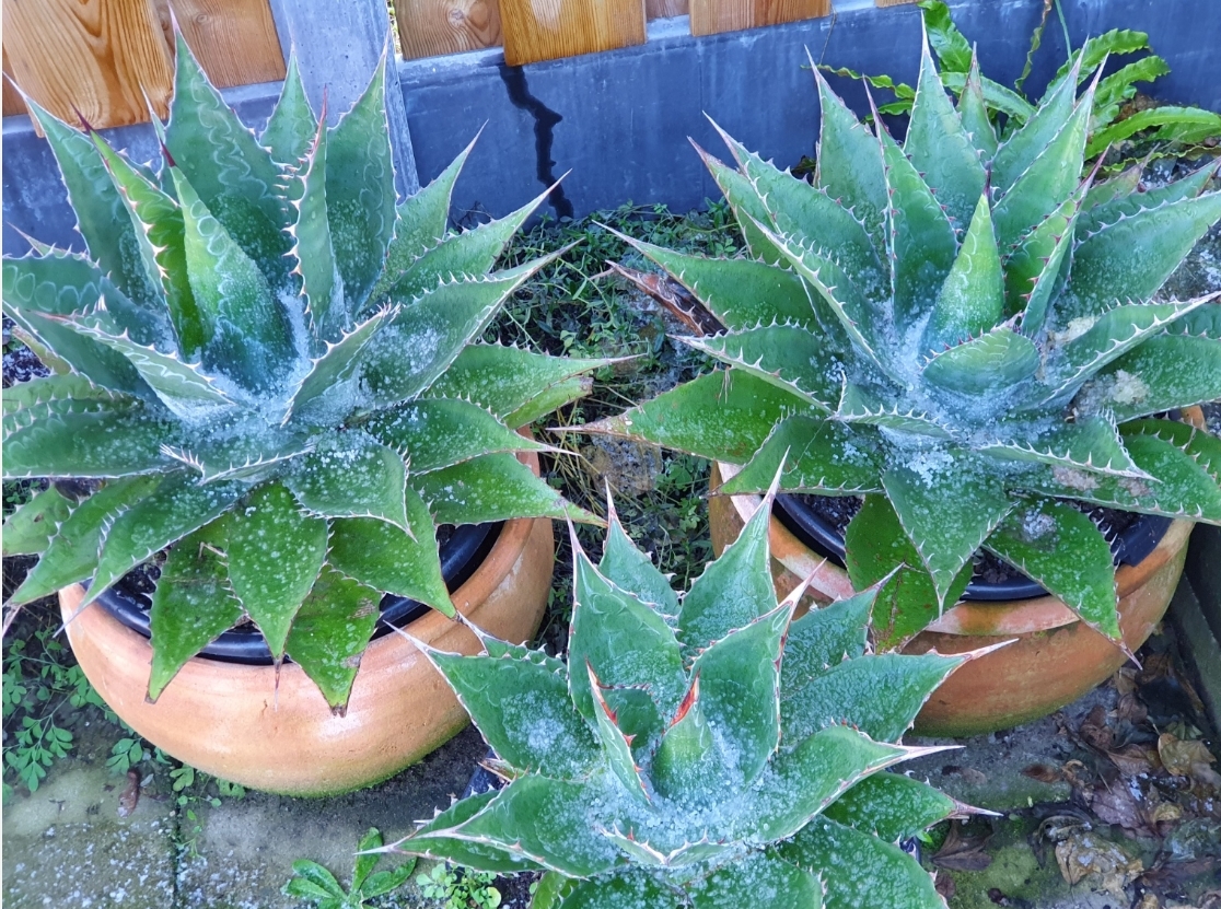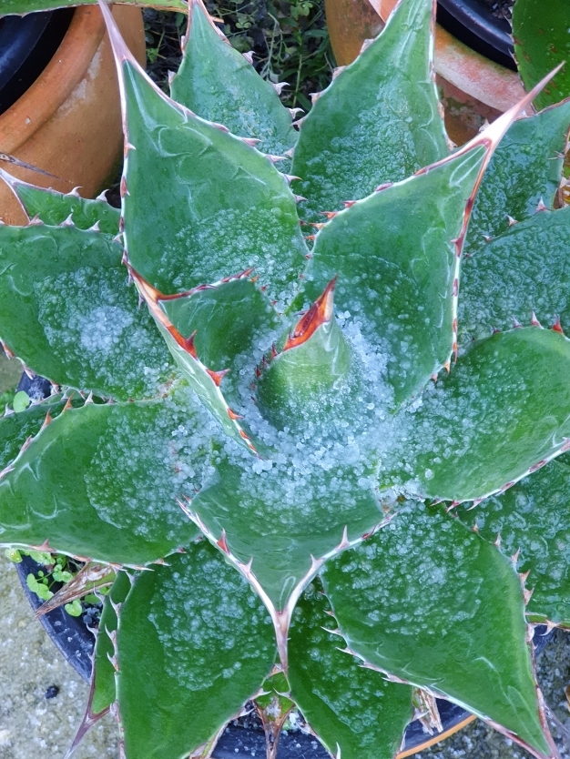 Dit is volgens mij de enige Agave die onbeschadigd uit een vorstperiode kan komen.