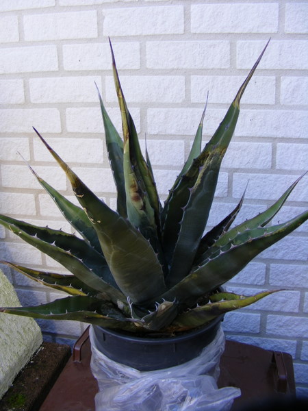 Vorig jaar heb ik van Paul een Agave ferox overgenomen van rond de 20 jaar oud. (Paul verbeter me als ik het niet goed heb!). Schitterende plant alleen nu de winter door...tja daar begonnen de problemen.