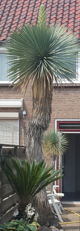 En na bloei in 2013, 2015 nu weer bloei... Deze Yucca gaat gelijk bloeien als de kop weer volledig is na de vorige bloei. Nu laat ik hem gaan. Knip de bloem nu niet eerder weg.