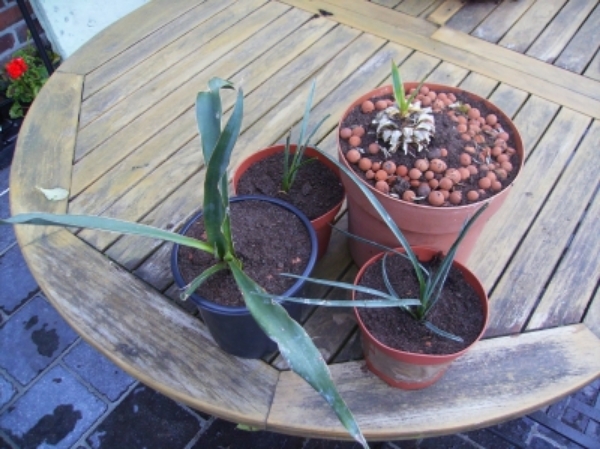 Het zijn kleinere Yucca' s , 2 jaar oud, ik weet niet of ze reeds een foto waard zijn, als je echt wil geen probleem.