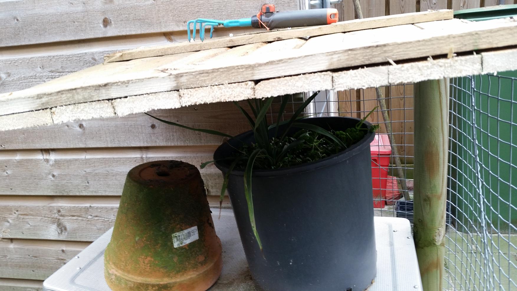In Oldenzaal kan het stevig vriezen... Een eenvoudig afdak is te maken door een frame van houten latten in kubusvorm of direct in de aarde gestoken af te dekken met een folie of glasplaat (Ietwat aflopend).