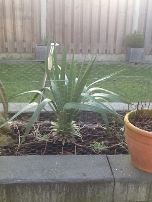 De Yucca voor ik hem (en de rest van de tuin) had gesnoeid