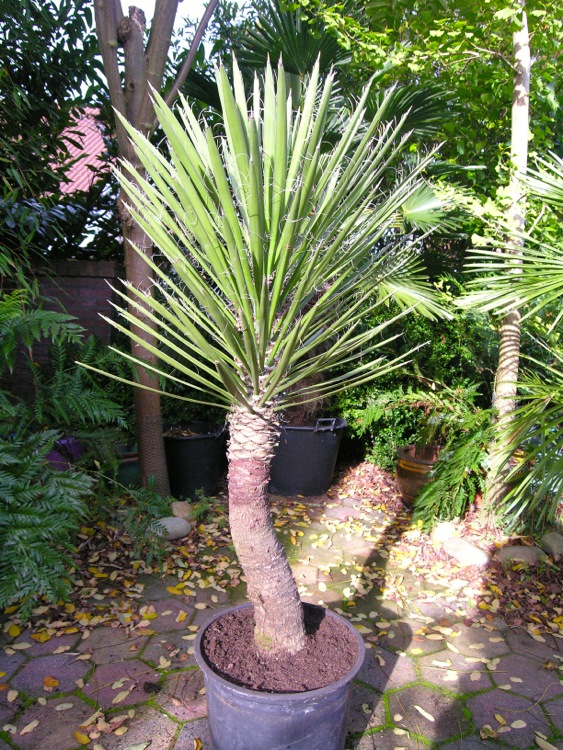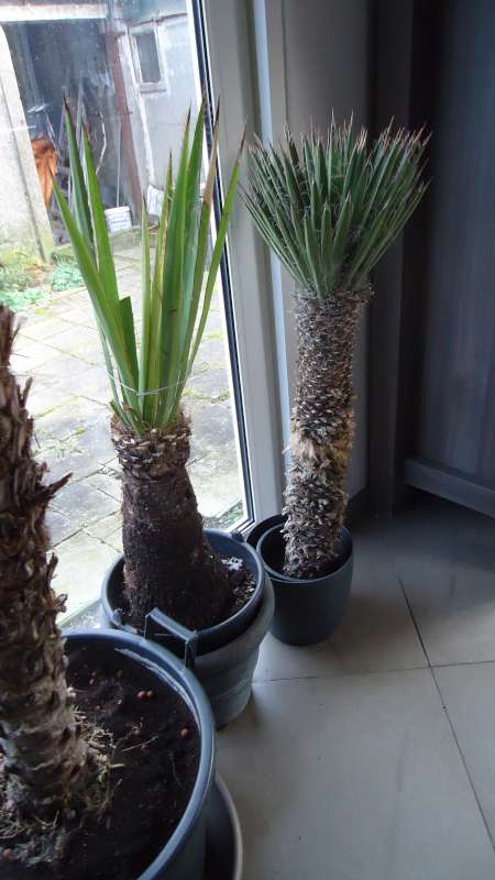 Hitch schreef:Ja, en goed doorworteld ook. Die filifera zit te wringen in zijn kleine kuip maar aangezien ze volgend voorjaar de volle grond ingaan doe ik er verder niets aan. De faxoniana heeft wel een lichte verkleuring in zijn blad, alsof hij te weinig licht heeft gekregen voor een langere periode of zo. Dit komt ongetwijfeld wel terug goed maar ik vraag me toch af hoe dit komt. Iemand enig idee hoe lang die Yucca's in de donkere containers zitten komende uit Mexico tot aflevering?