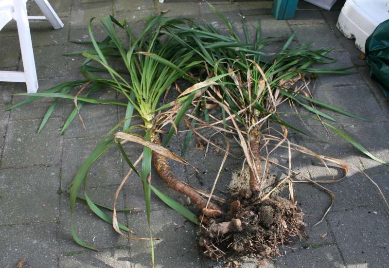 Ik heb nu een probleempje met 1 van de Yucca's welke met kluit en al is overgekomen.