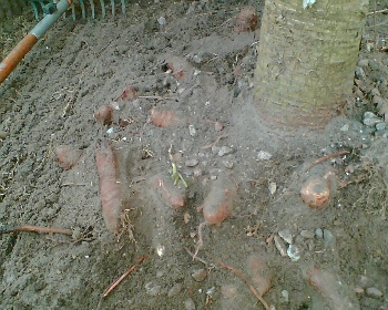 Bingo!! Eind April een wortelstek van een Yuca Gloriosa afgestoken en nu al reseltaat.