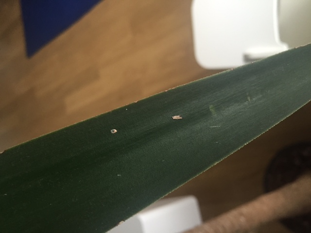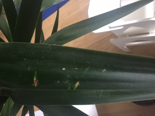 Ik veronderstel dat die plekken op het blad niet kunnen komen door te weinig water? Of zou mijn Yucca palm toch meer water nodig hebben?