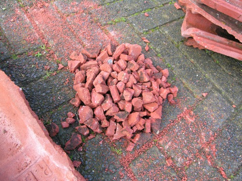 Ik wil a.s. voorjaar nog enkele Yucca's in de tuin planten, o.a. Yucca linearifolia. De beoogde plek is redelijk beschut tegen de regen, maar als het er nat wordt is dat vooral tijdens de winterregens. Een goede drainage kan hierbij van dienst zijn. Ik heb een partijtje beschadigde betonnen dakpannen over. Het materiaal is tamelijk bros van structuur en lijkt op terracotta. Met een hamer is het gemakkelijk te vergruizen. Ik overweeg om dit te hergebruiken als onderlaag in de plantgaten. Is dit een goed idee of kan ik beter een zak grind aanschaffen?