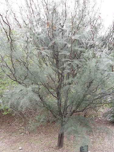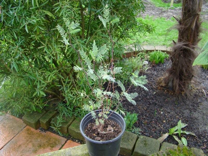 De Prosopis chilensis of Chileense Johannesbroodboom die inheems is in Zuid-Amerika heb ik ook gezaaid.Ik vind zijn zigzag-groeiende takken(zoals Acacia) fantastisch in combinatie met de grijze blaadjes.