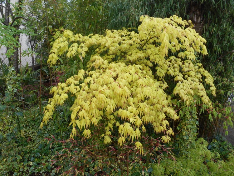 Ik kreeg onlangs ook van Esveld Boskoop de opmerking dat kleigrond ongeschikt is voor Acers. Desalniettemin doen ze het hier uitstekend op de zeeklei van de Flevopolder. Een aantal exemplaren zijn overgeplant uit de vorige tuin op rivierklei en maken inmiddels al bijna 30 jaar deel uit van de collectie. Ik plant ze net als Esther niet in de pure klei maar meng de rul gemaakte klei royaal met zwartveen potgrond (pH neutraal). Japanse esdoorn houden over het algemeen niet van felle zon en blijven mooier als ze op het heetst van dag wat schaduw krijgen. Kleinblijvende soorten zijn ook zeer geschikt om als kuipplant te houden en kunnen dan door middel van jaarlijkse snoei in model worden gehouden.