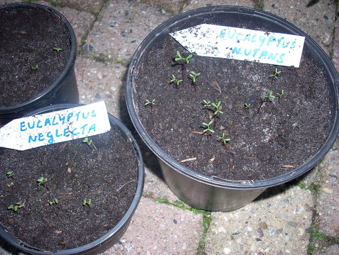 Even een update wat betreft mijn eucalyptus, zijn nu al aardig gegroeid ongeveer nu 35 cm hoog,wat opvalt de neglecta heeft een wat steverige stam dan de nutans,wat de groei betreft doen ze het ongeveer even goed,als er maar veel licht is en warmte.