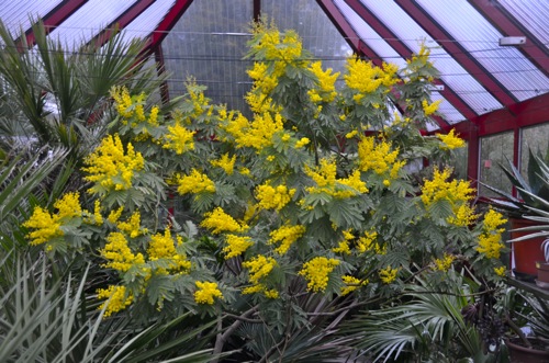 De bloei is nu op het hoogtepunt, met de verwachte hogere temperaturen volgende week zal het daarna wel minder worden. De plant zou nu eigenlijk buiten onder een afdak moeten staan. Misschien lukt dat met de Acacia armata die later in bloei komt dan de dealbata.