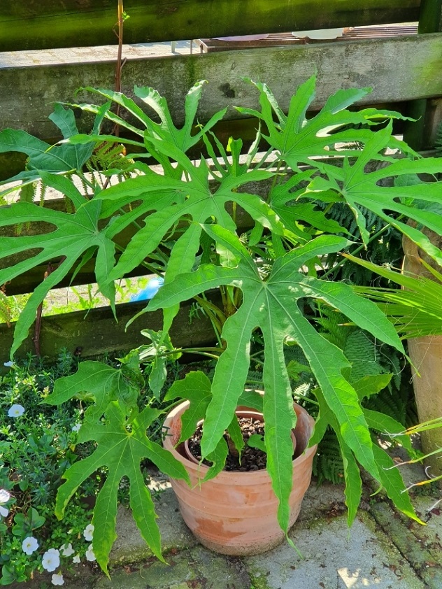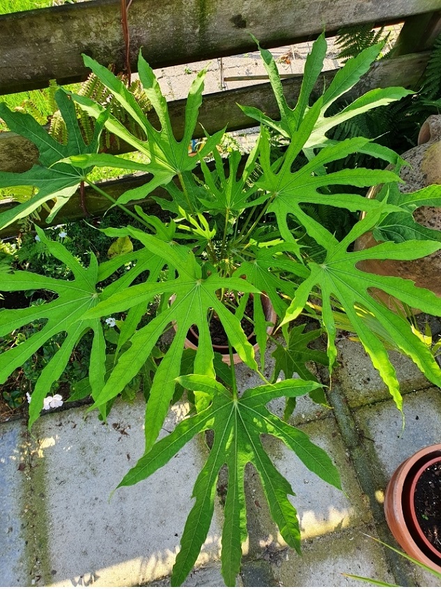 Ik heb vanmiddag ook mijn Scheflera taiwaniana in de schuur gezet (vanochtend was het er een heerlijke +6°), terwijl die het in volle grond ook zou moeten kunnen hebben.
