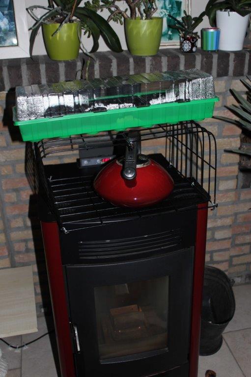 Potjes op ± 25cm boven de kachel